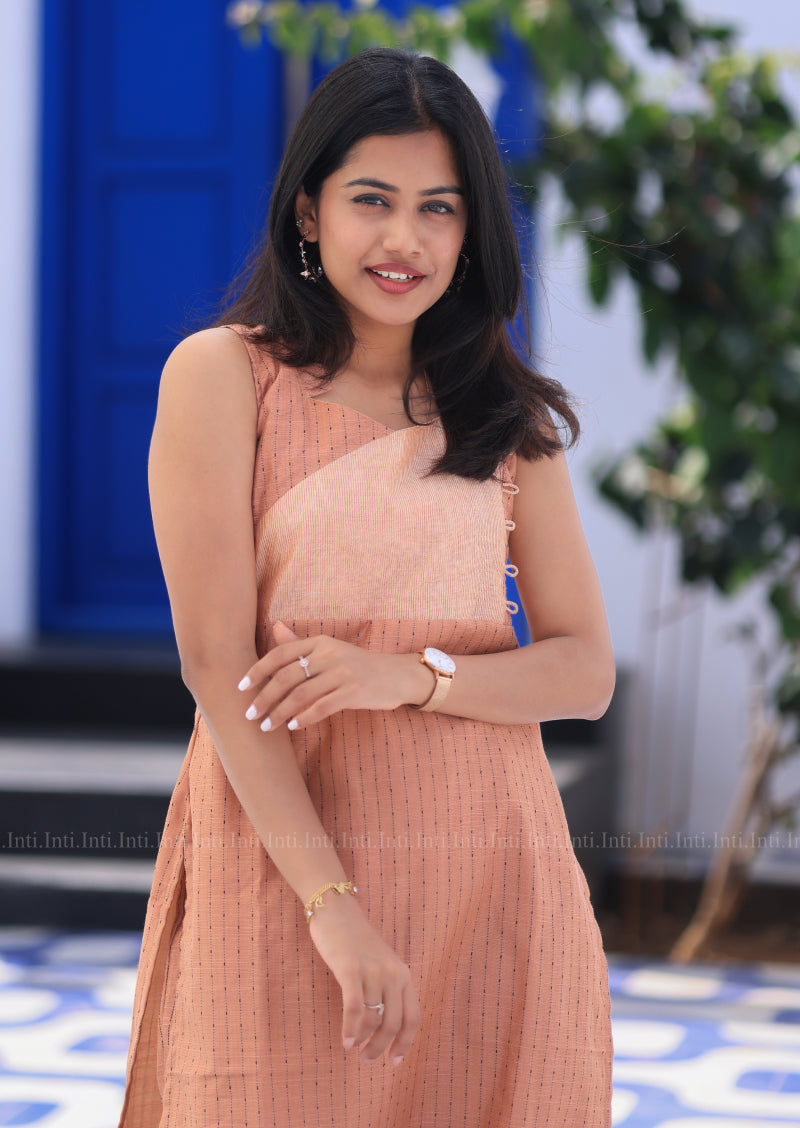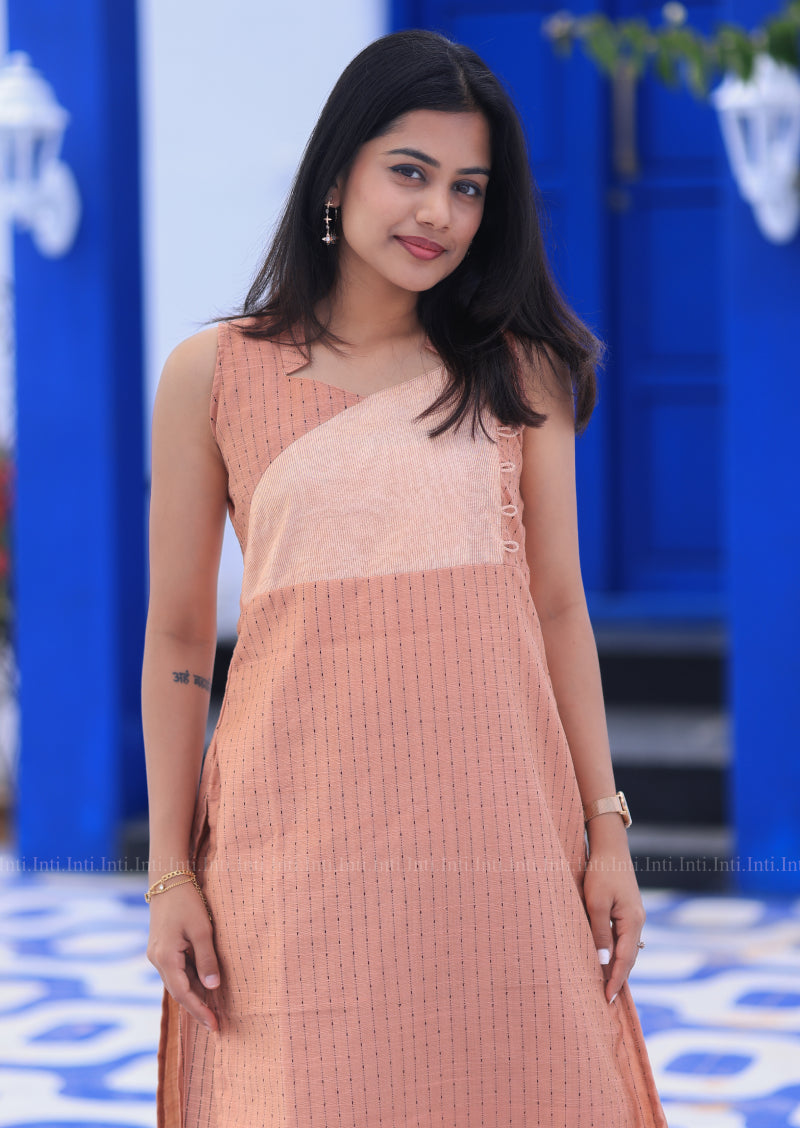Elevate your wardrobe with this refined two-piece ensemble. The sleeveless top features an asymmetric wrap collar with a delicate loop detail, creating an effortlessly chic silhouette in soft peach. Crafted from breathable cotton with a structured lining for comfort and durability, it pairs seamlessly with wide-leg pants designed with functional pockets. Perfect for transitional seasons, this set delivers understated elegance for both casual outings and polished occasions.