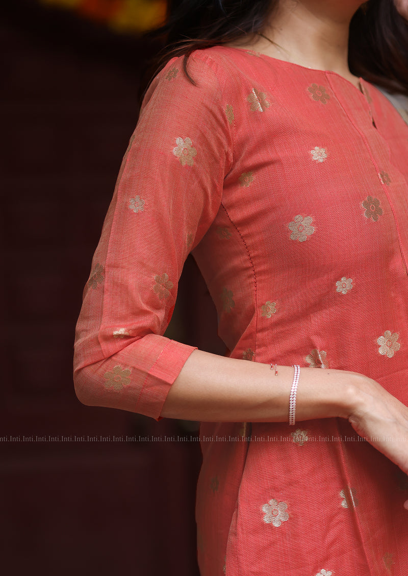 This elegant Heartline Serenade Top & Dupatta Set features a graceful scalloped slit neckline and refined 3/4th sleeves, tailored in a vibrant orange hue with comfortable lining. The ensemble is beautifully complemented by a grey floral border dupatta adorned with delicate golden buttas, adding a touch of subtle opulence. Perfect for sophisticated occasions, this set combines classic design with modern charm for a polished and stylish look.